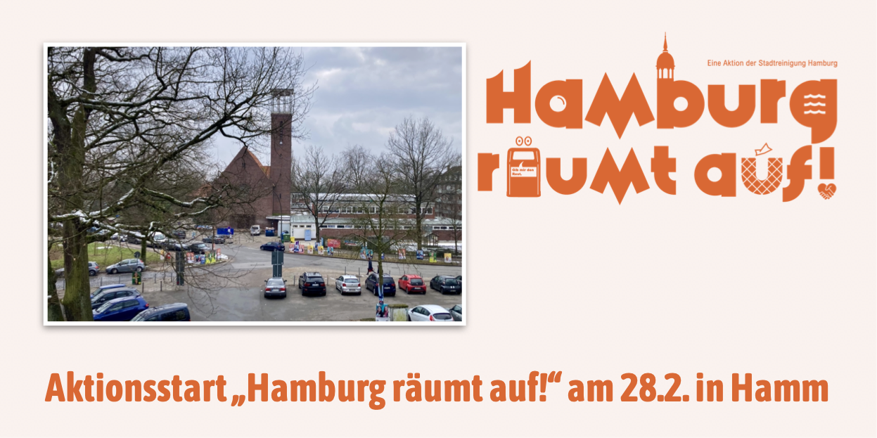 Und ja, es ist tatsächlich so, am Freitag, dem 28. Februar, startet die diesjährige Auftaktveranstaltung der Initiative "Hamburg räumt auf!" mitten in Hamm gegenüber vom Hammer Marktplatz an der katholischen Herz Jesu Kirche. Umweltsenator Jens Kerstan, Stadtreinigungs-Geschäftsführer Rüdiger Siechau und viele fleißige Schüler:innen einer dritten und einer vierten Klasse von der Schule Hammer Kirche werden zum Start der Aktion im nahegelegenen Hammer Park Abfall sammeln.
