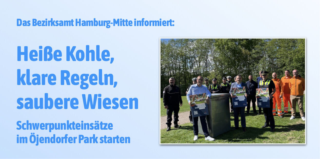 Grillvergnügen ja – Müllberge, Lärm, ausufernde Grillfeste und Sachbeschädigung nein! Damit der beliebte Öjendorfer Park auch in der wärmeren Jahreszeit ein Ort der Erholung für alle bleibt, geht das Bezirksamt Hamburg-Mitte gemeinsam mit Stadtreinigung und Polizei in die Offensive.