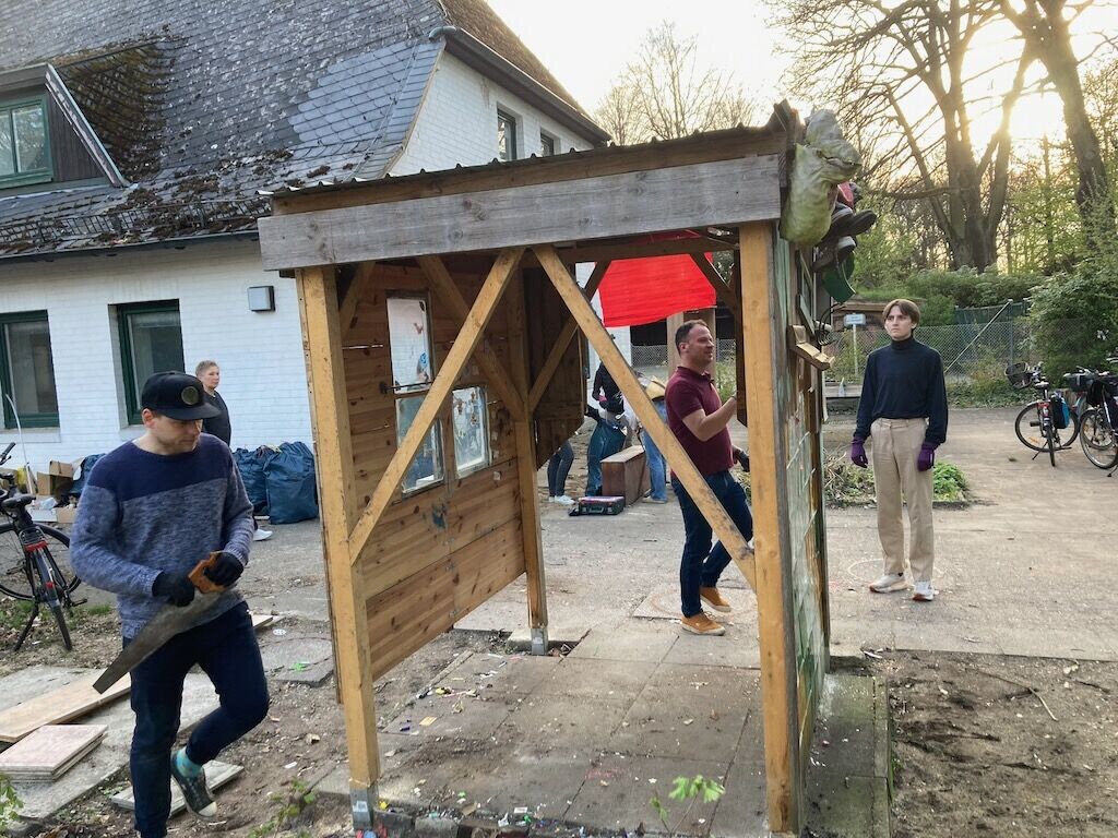 Viele wussten auch bei diesem Treffen gar nicht, worauf sie sich genau eingelassen hatten und viele kannten sich auch bisher nicht, aber alle verband der feste Wille, sich in der Nachbarschaft zu engagieren und die Fairschenkbox endlich zu befreien. Das schien nicht ganz einfach, aber zum Glück hatten sich viele Talente für die unterschiedlichsten Arbeiten eingefunden und alle packten an und machten, was konnten und wollten.